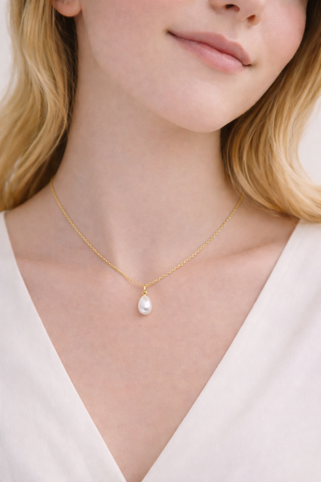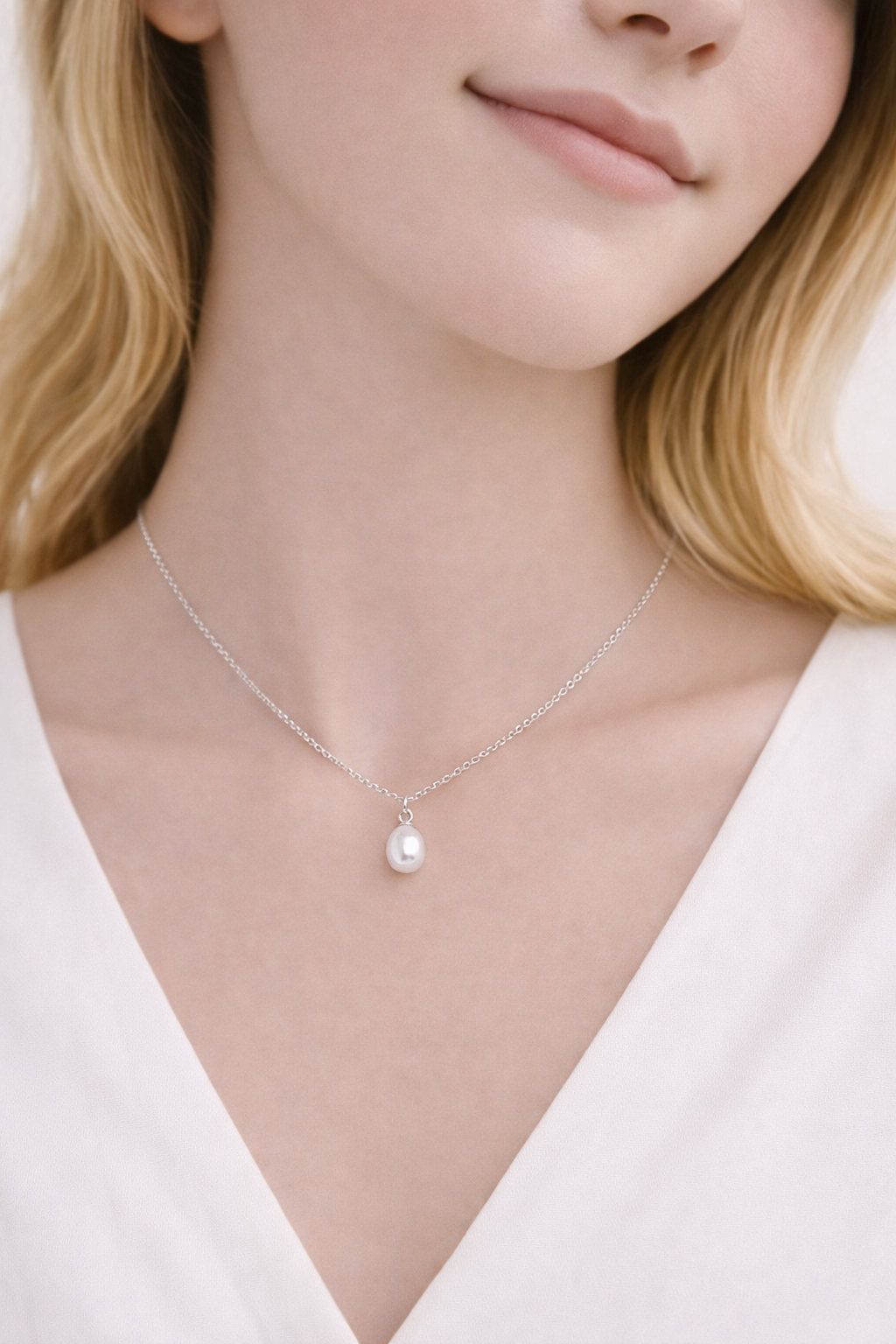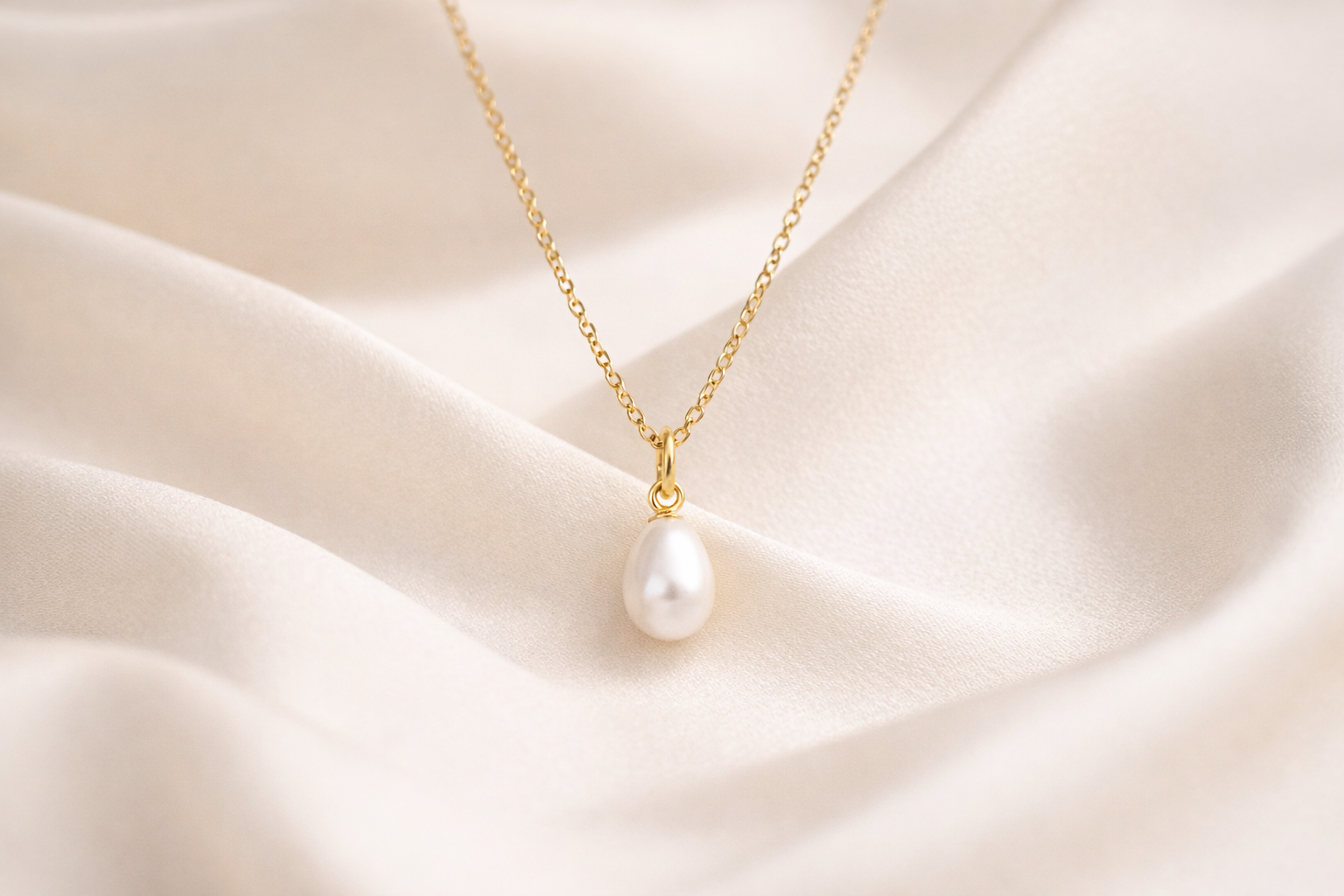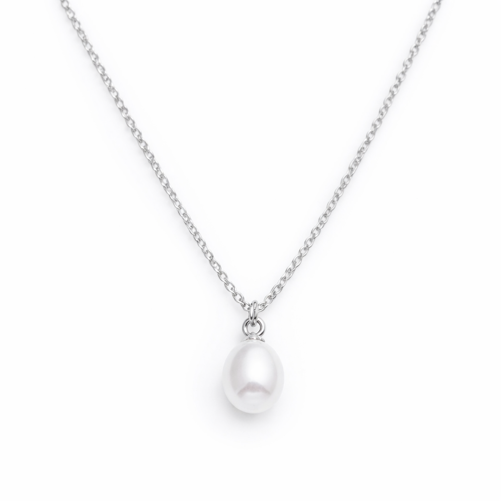 En elegant og tidløs halskæde med en smuk dråbeformet ferskvandsperle.