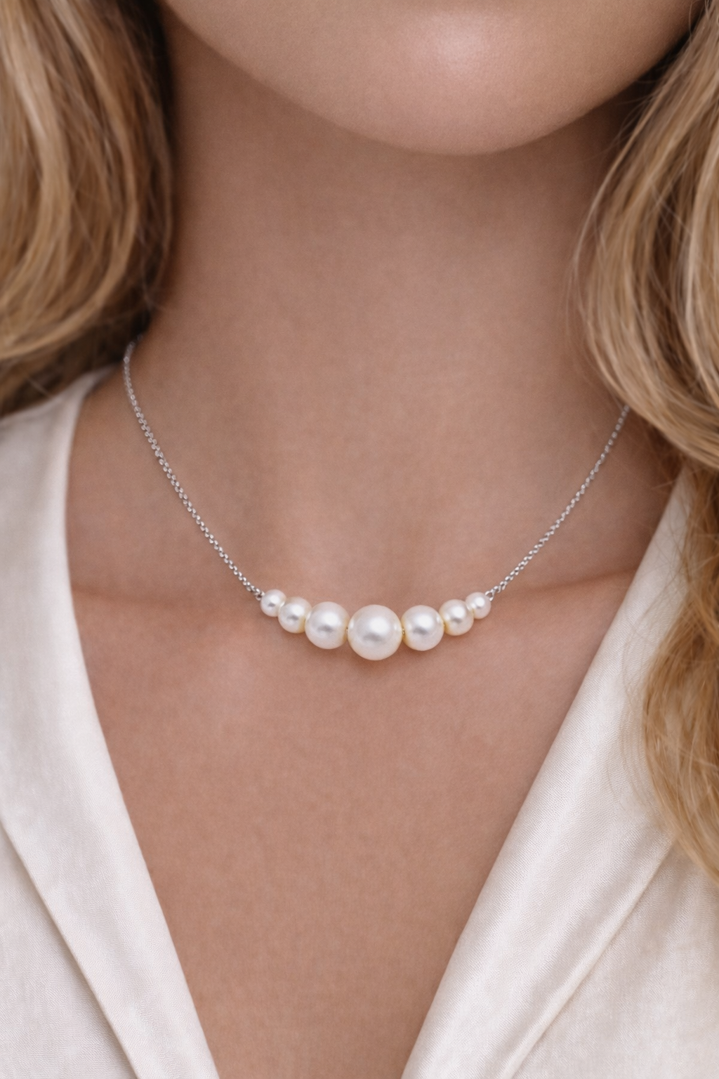 ALLY halskæden er en elegant og feminin perlehalskæde med et klassisk udtryk og et moderne, let design. De smukke ferskvandsperler er arrangeret i et harmonisk forløb, hvor størrelsen gradvist øges mod midten og skaber et roligt og balanceret udtryk.