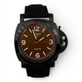 Den brune skive skaber en flot kontrast til de kraftige luminous visere og markeringer - så tiden er nem at aflæse. Den orange sekundviser tilføjer et diskret, sporty touch, der giver uret liv uden at tage over.