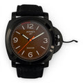 Håndsyet sort nubuck læderrem fuldender uret. overfladen har et let råt look, der passer perfekt til urets instrument-inspirerede design.