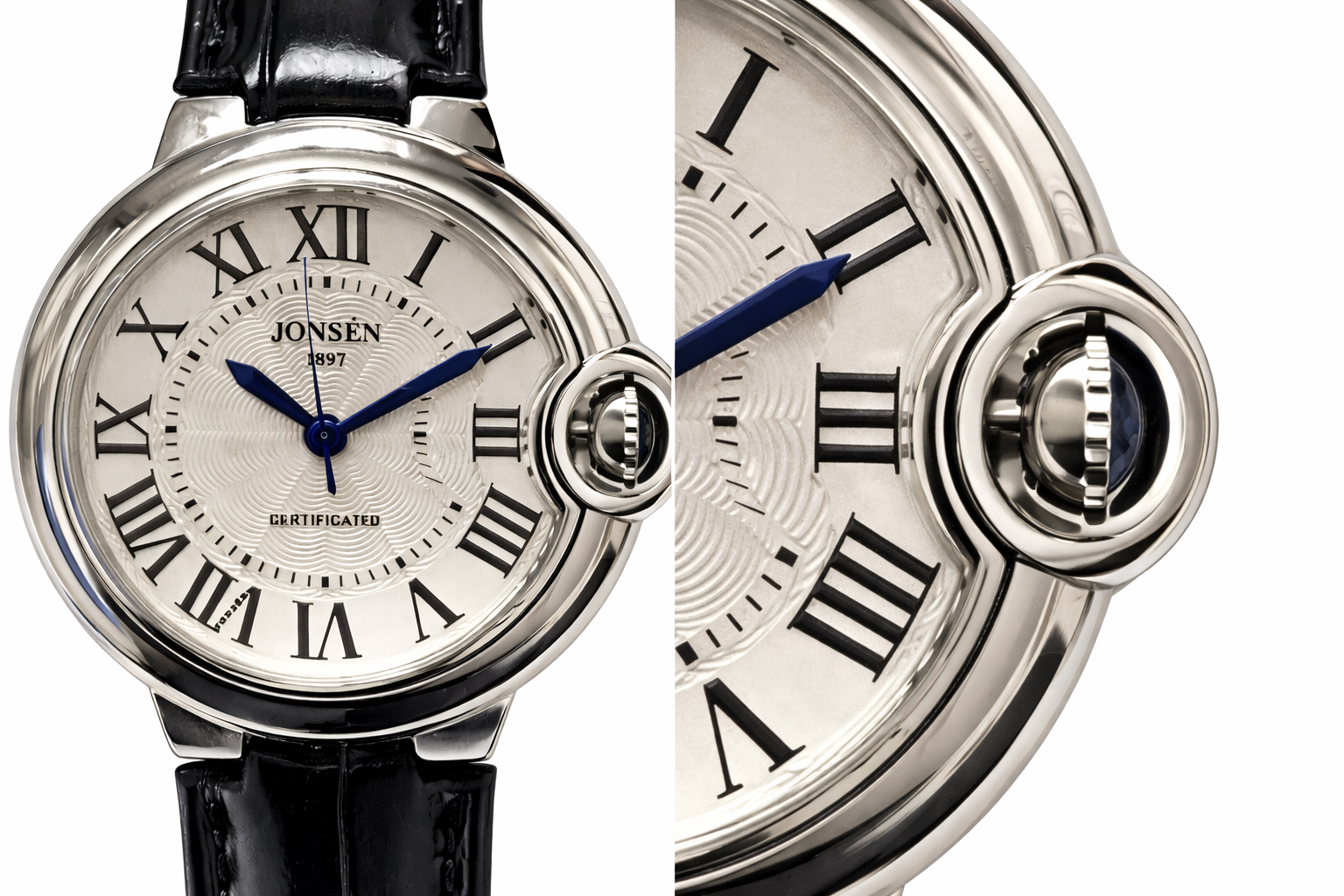 Jonsèn DARLING er skabt til dig, der elsker klassiske linjer med et moderne, luksuriøst udtryk. Den runde stålkasse får et eksklusivt twist med den karakteristiske krone med blå detalje, som tilfører uret personlighed og finesse.