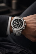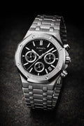 Den markante urkasse og den massive lænke er fremstillet i 316L kvalitetsstål, kendt for sin styrke, holdbarhed og eksklusive finish. Det giver uret en tyngde og robusthed, man både kan se og mærke på håndleddet.