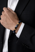 Herrearmbånd i blå agat & sort agat med guldfarvede detaljer