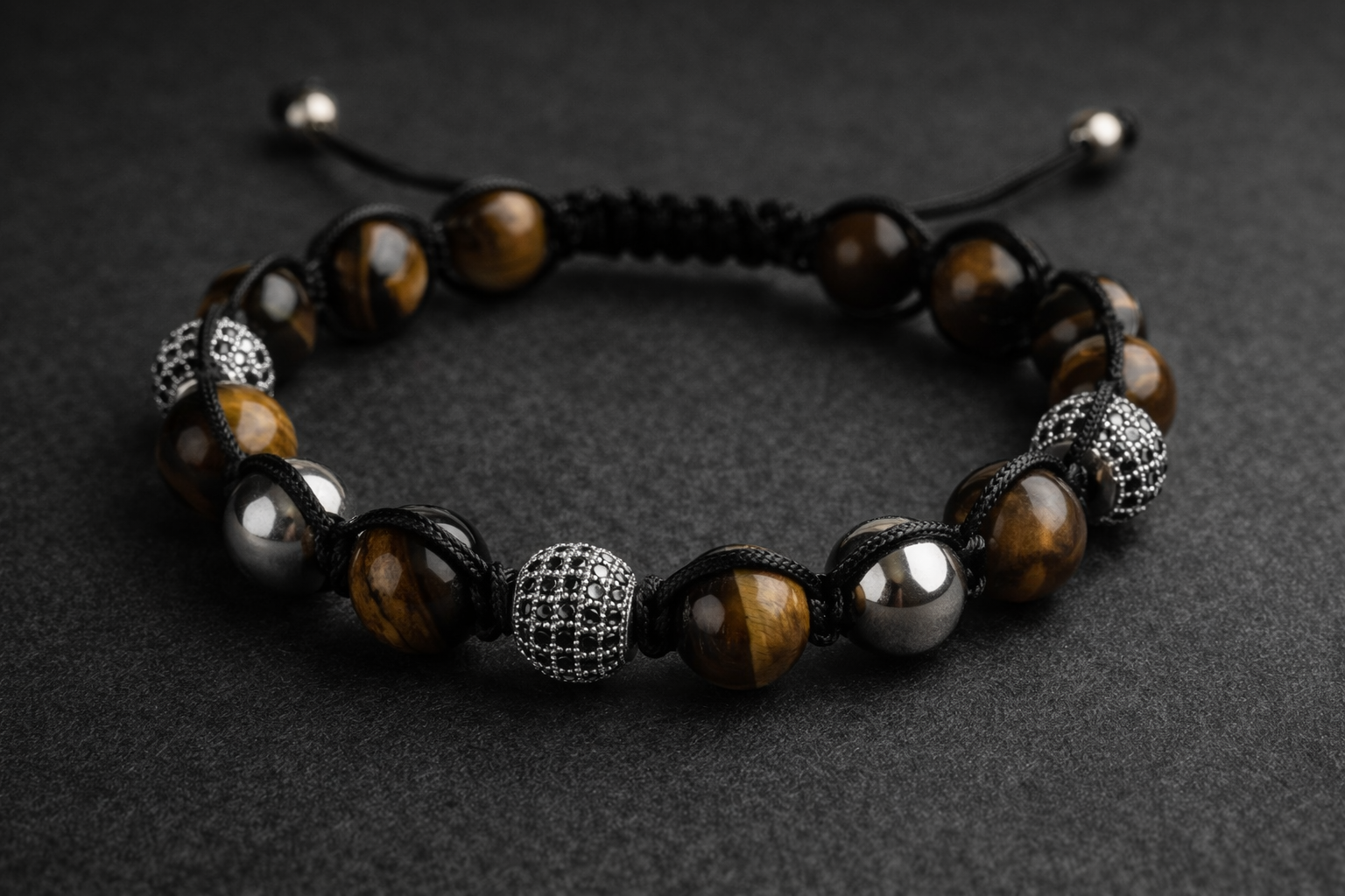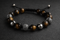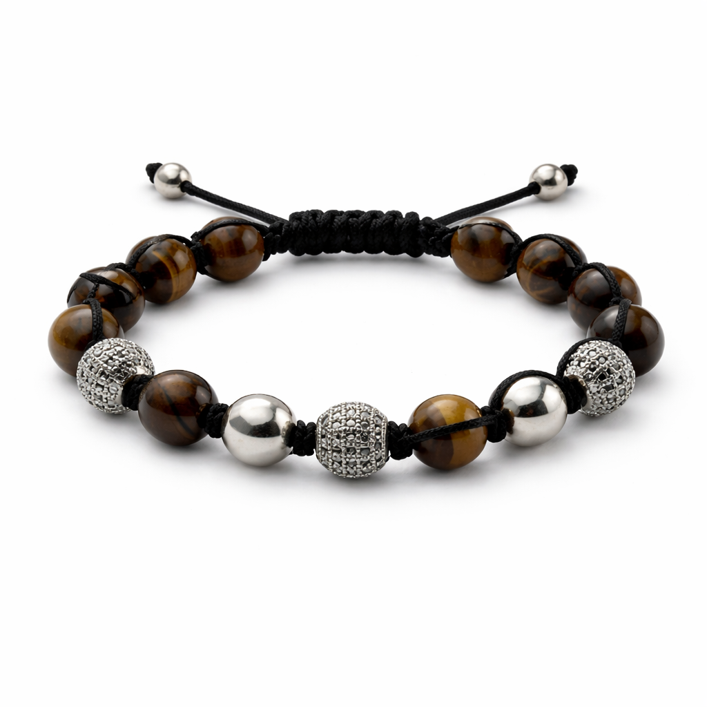 Herrearmbånd i brun tigerøje med eksklusive pavédetaljer