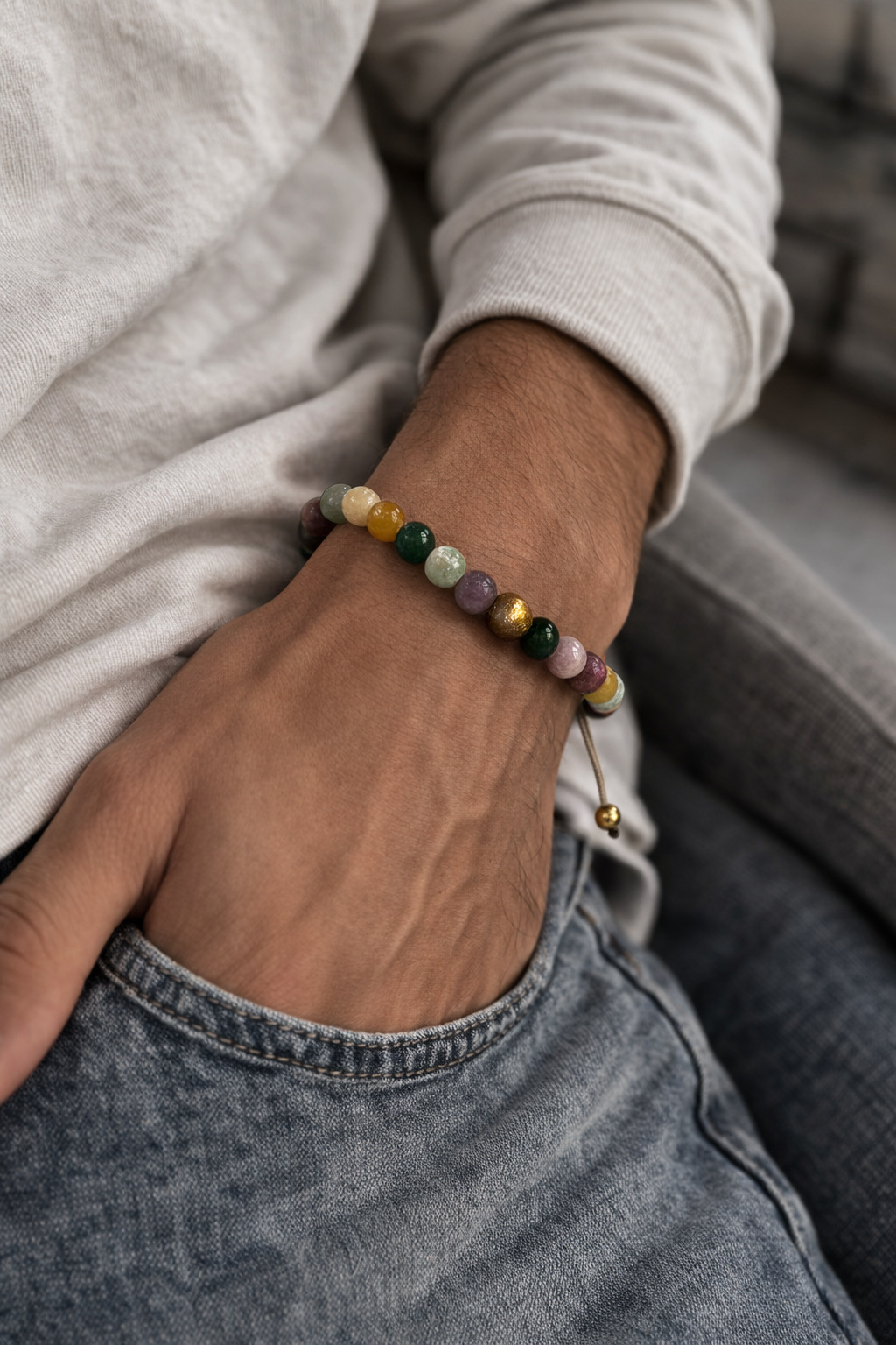 Farverigt herrearmbånd i agat & honningfarvet tigerøje
